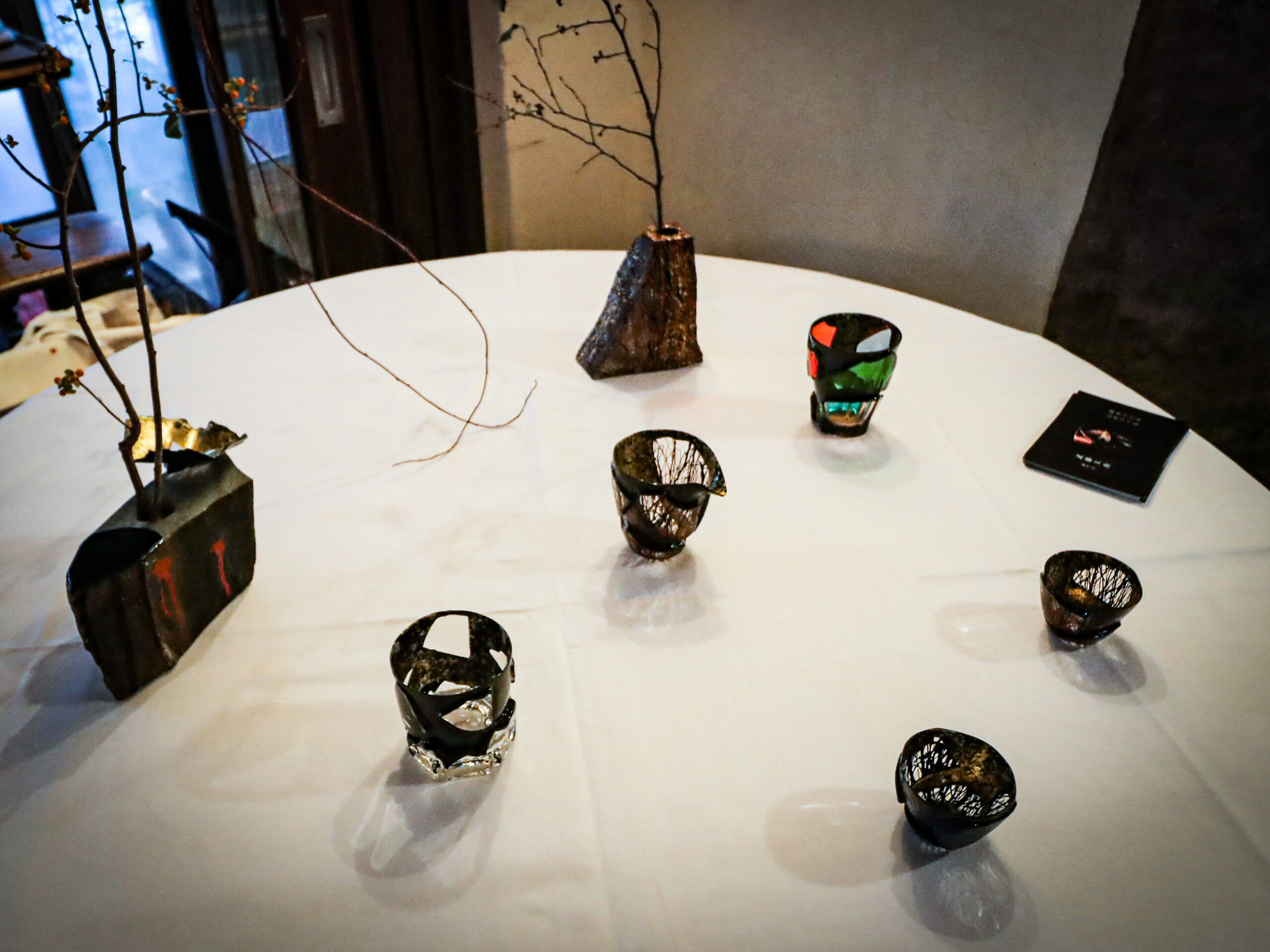 各自の席に展示作品リストとコース料理メニューを配布。