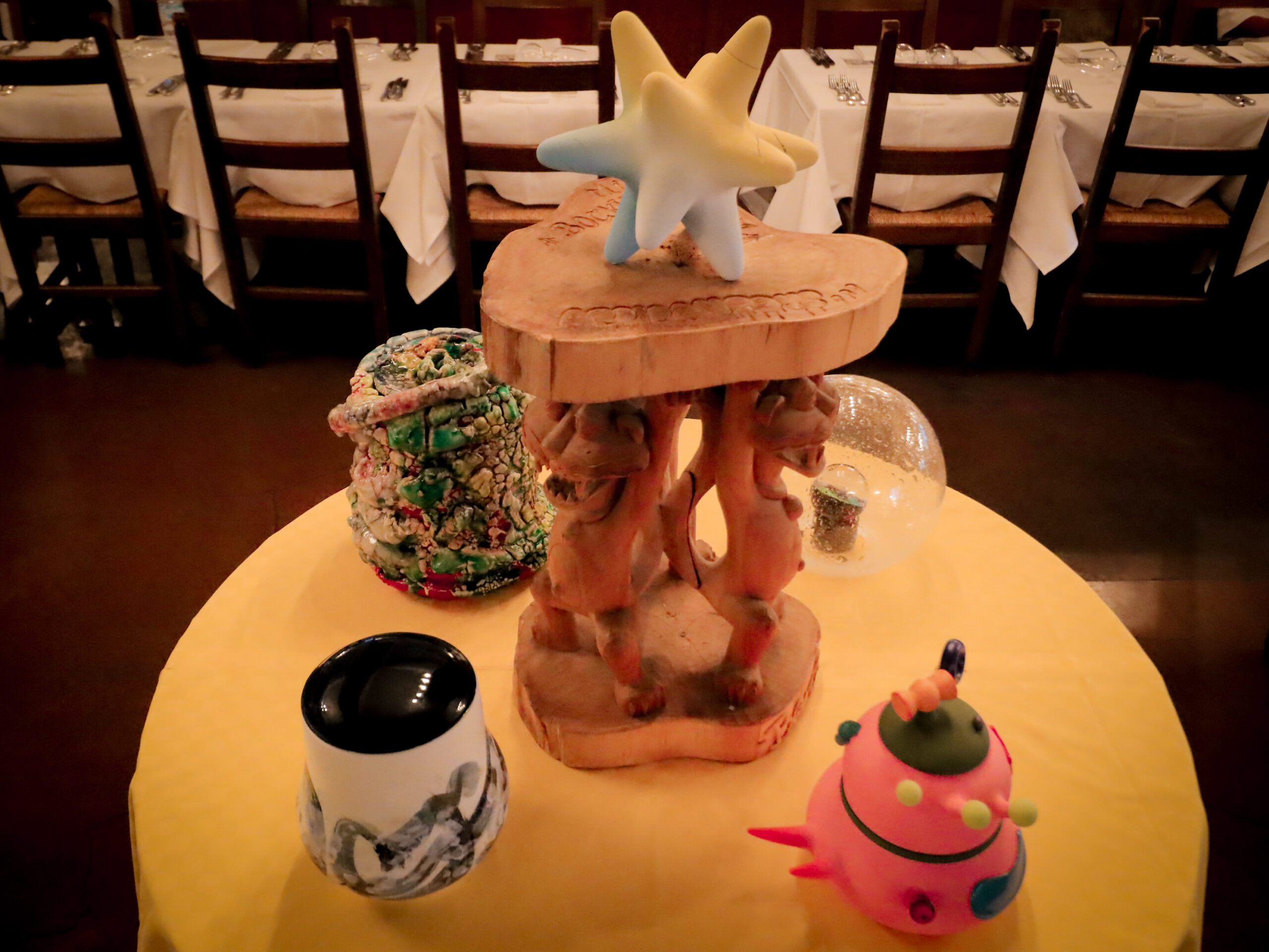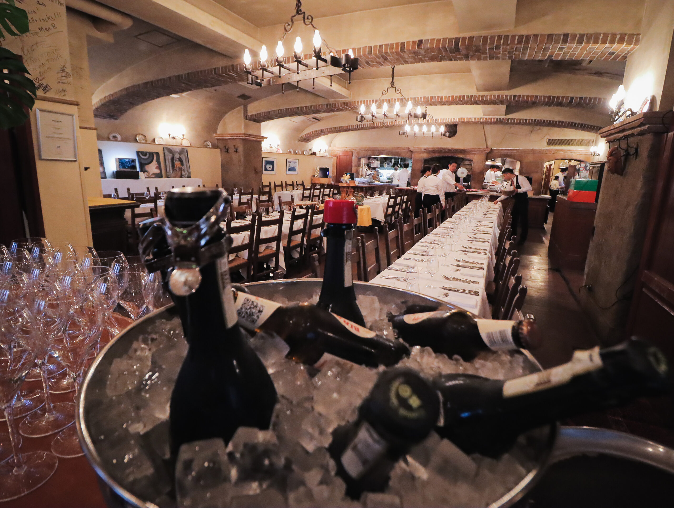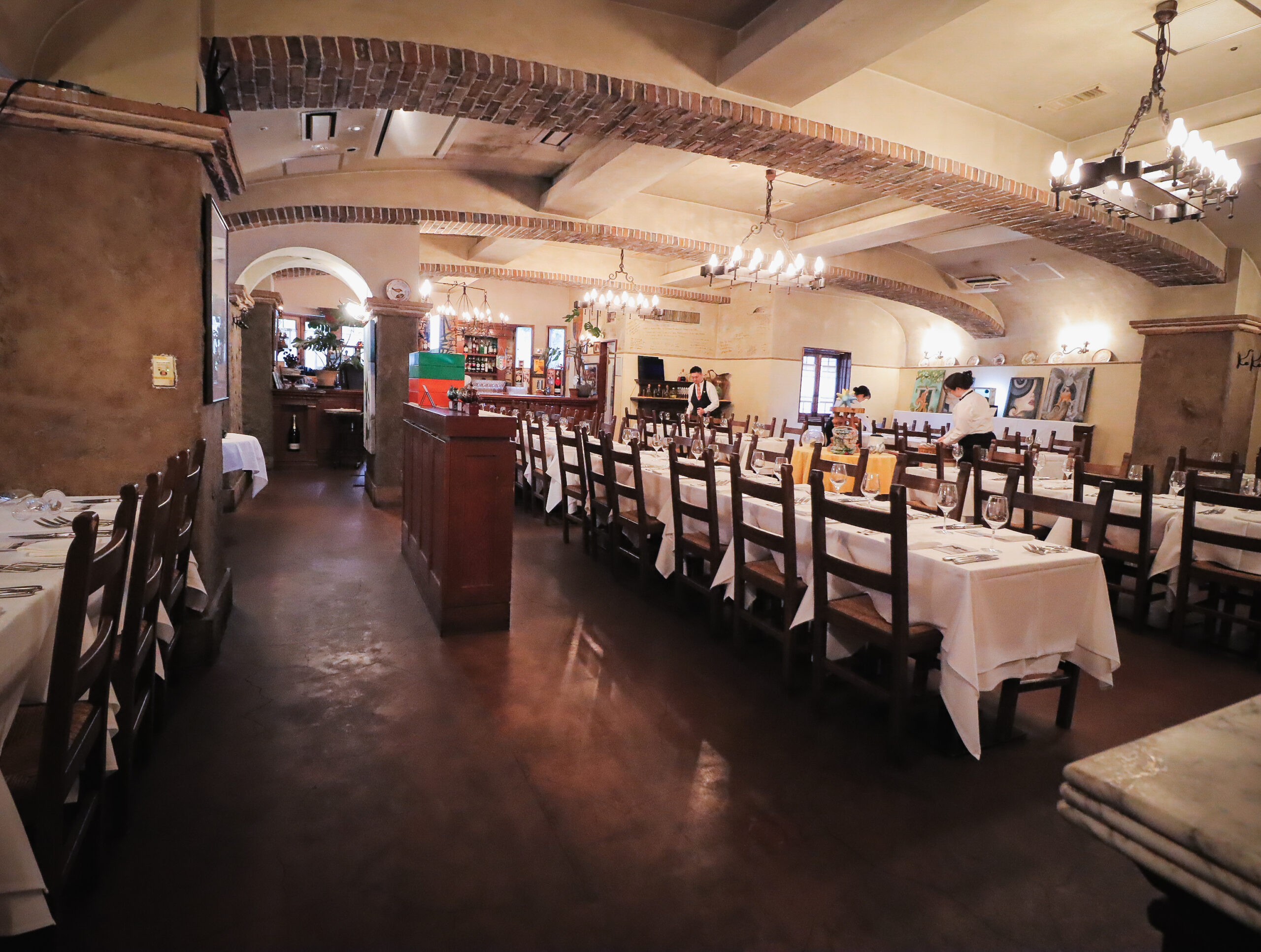 ラ・ビスボッチャのメインダイニングの作品展示と客席