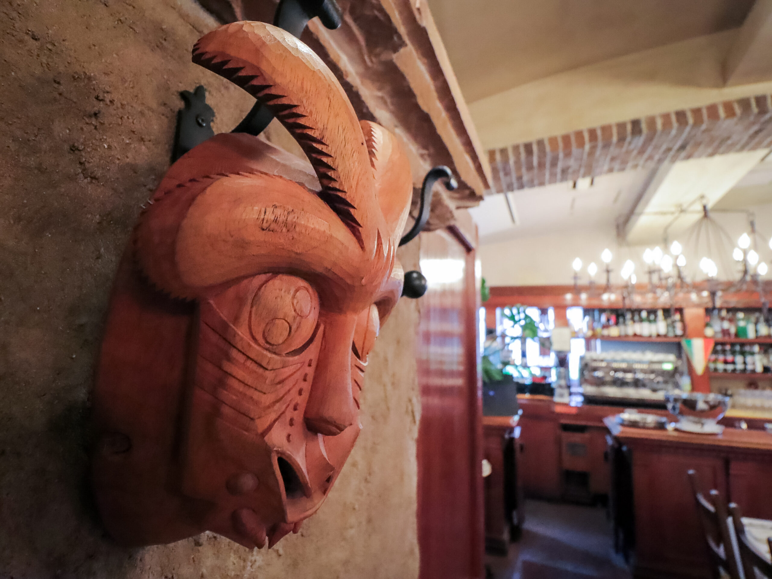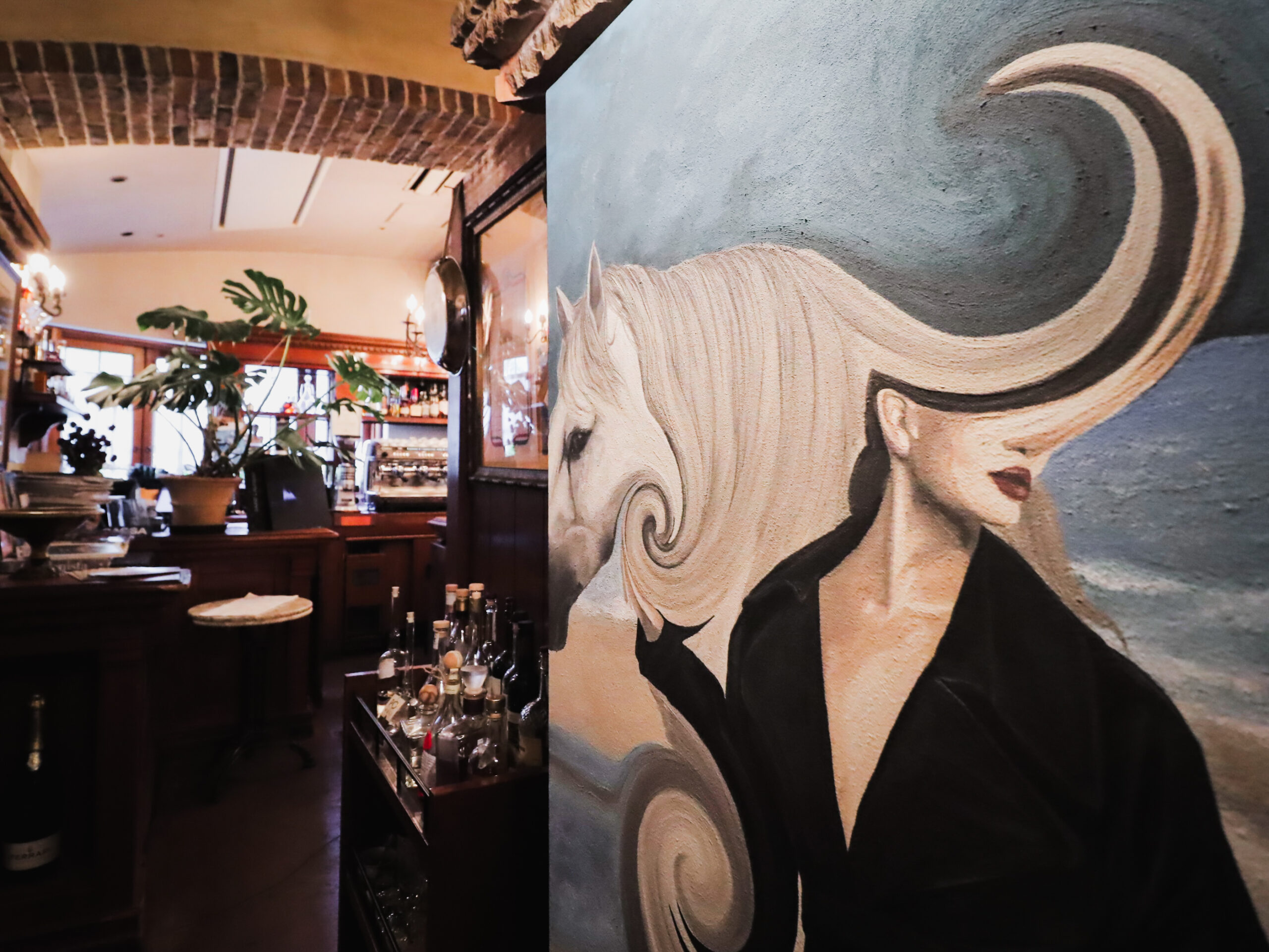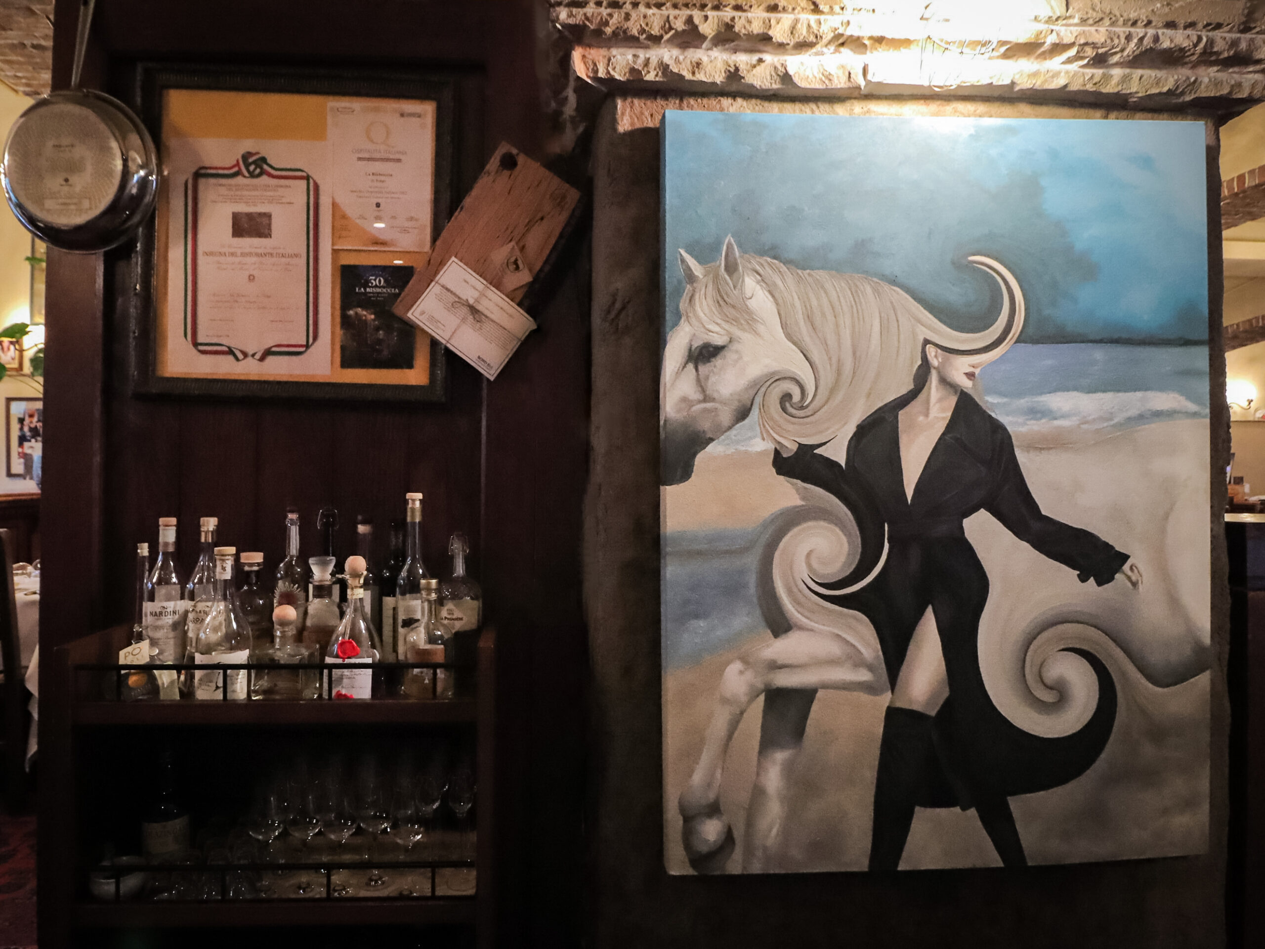 ラ・ビスボッチャのメインダイニングの作品展示と客席