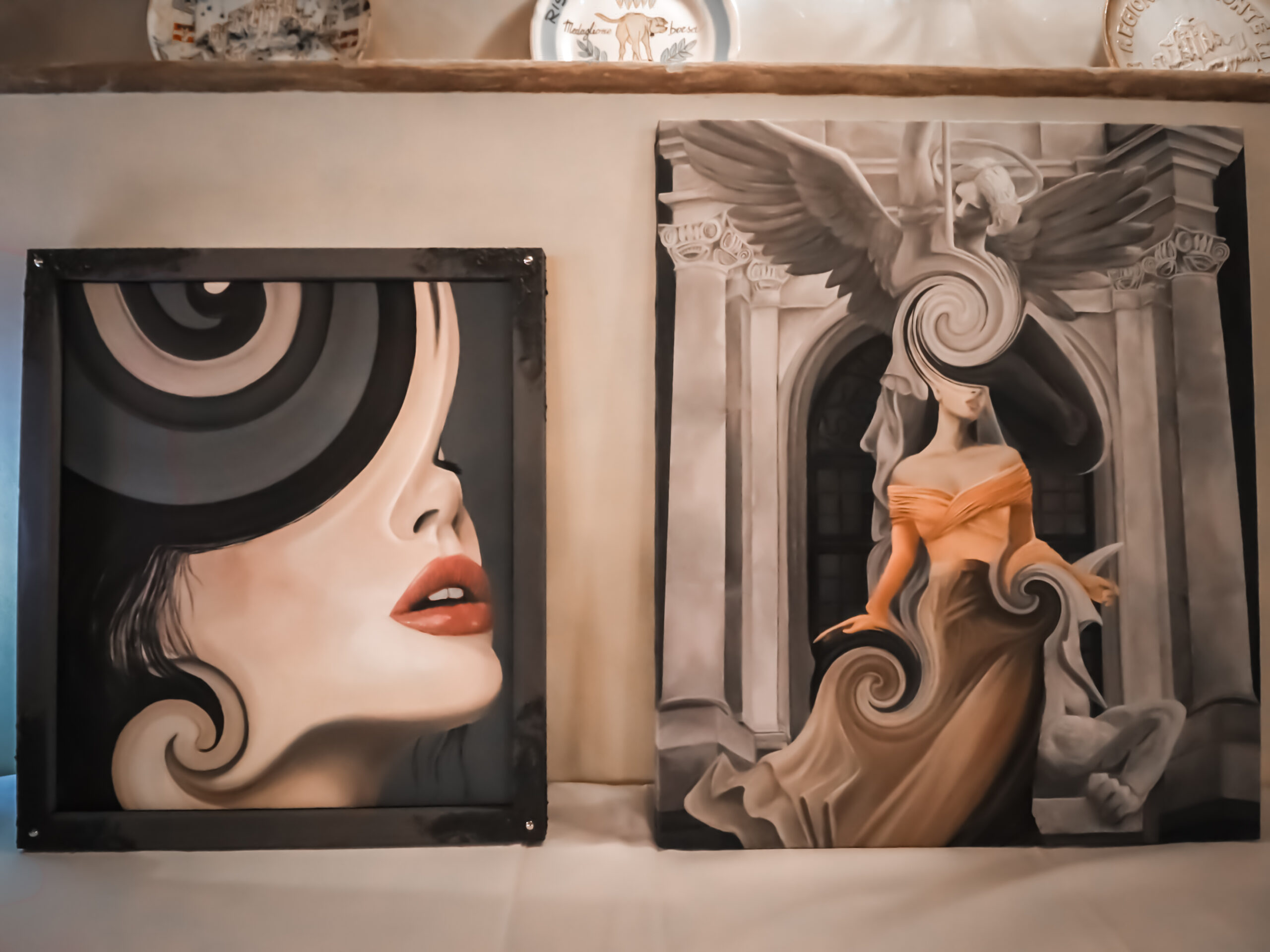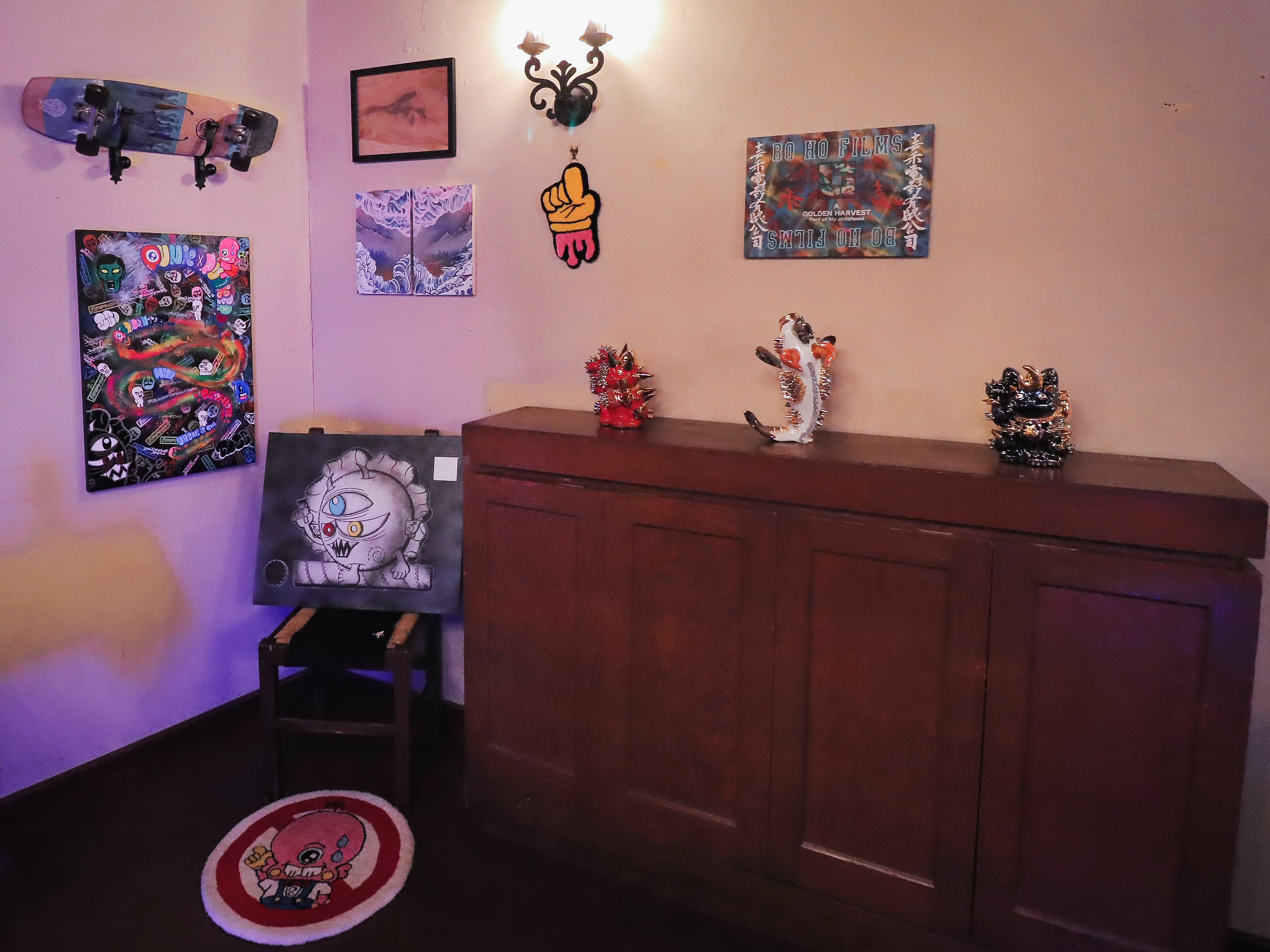 ビスボッチャ店内にギャラリー数社がアート作品を持ち込み、展示・販売。