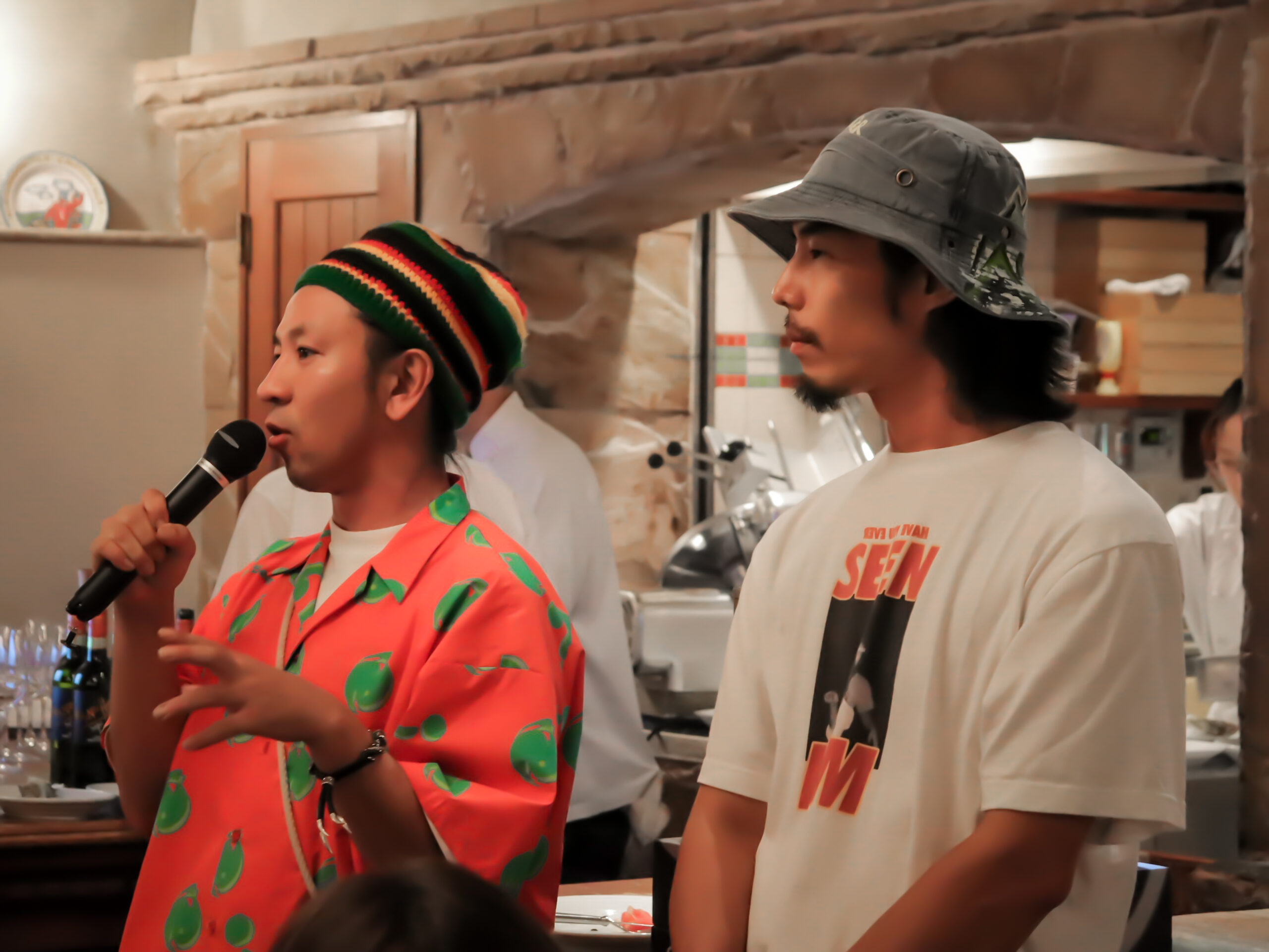 客席で挨拶をするBOCKYさん(左)とタケシさん