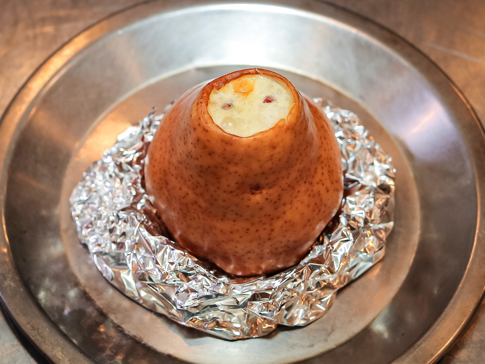 モンドール詰め洋梨をオーブンで焼き上げた状態(ホール)