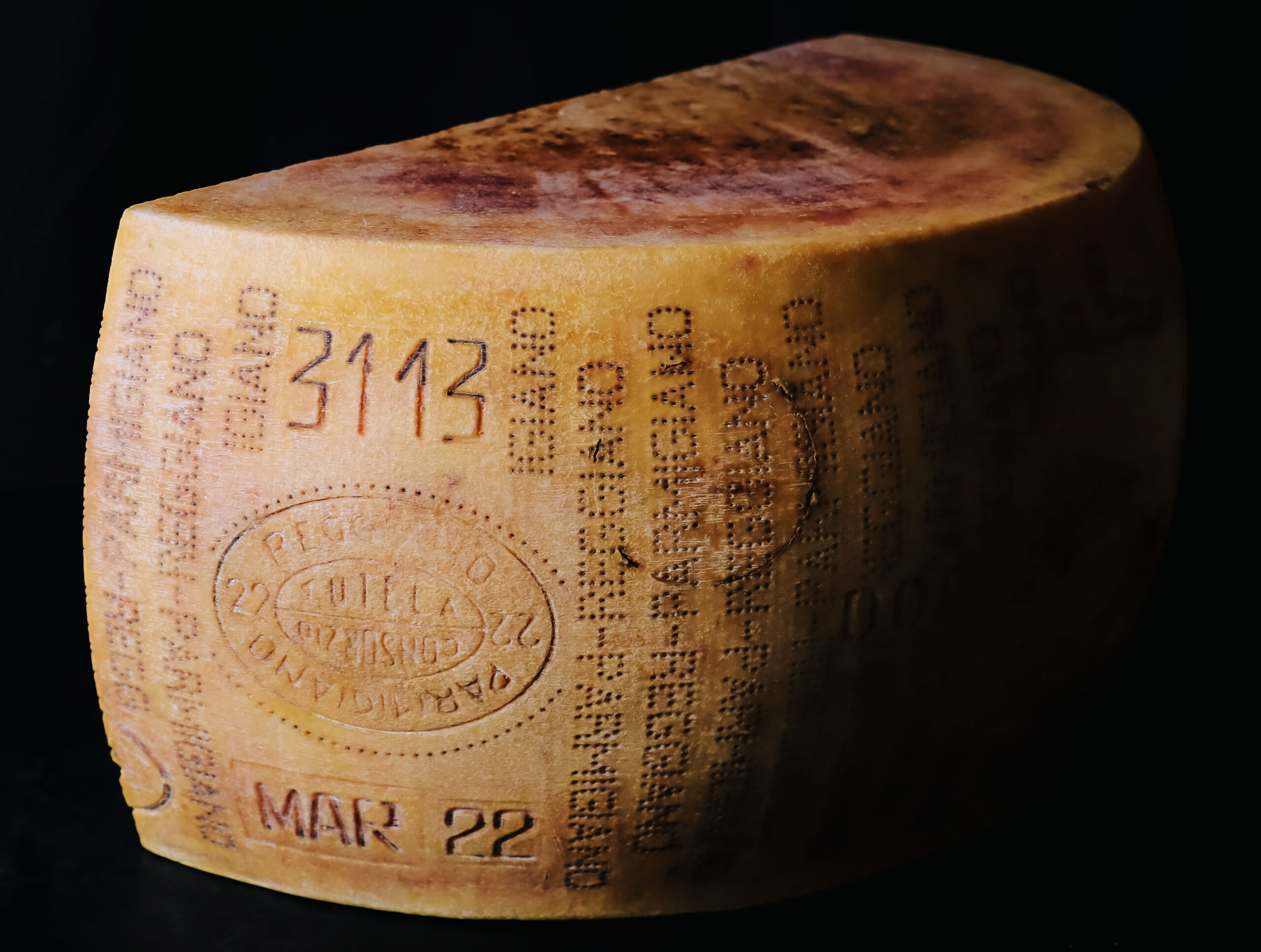 パルミジャーノ・レッジャーノは、イタリア北部エミリア・ロマーニャ州で1877年に創業した乳製品メーカーの老舗「アウリッキオ」社製。一年中干草のみを与えた牛の濃いミルクからつくるチーズは甘みと熟成感のバランスがよい