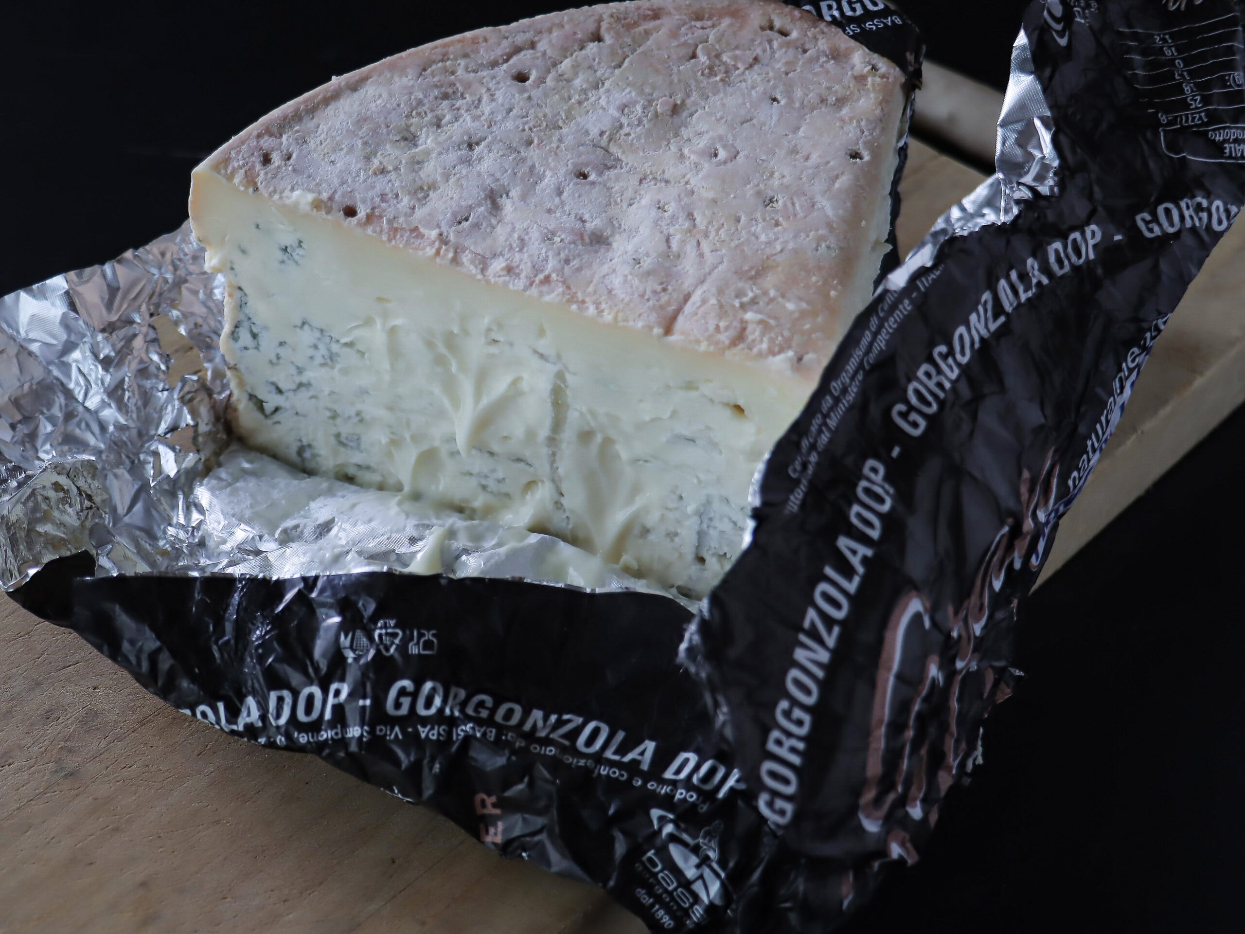 ゴルゴンゾーラチーズは、イタリア北部ピエモンテ州のセミハード系チーズの専門メーカー「スィ・インヴェルニッツィ」社の青カビと塩味が強い「ピカンテ」タイプを使用