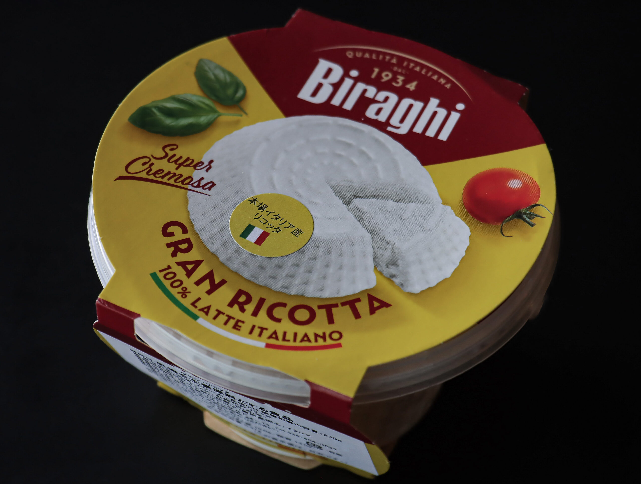 リコッタチーズはチーズの生成過程で生じた乳清を再加熱してつくる食品。低脂肪でさっぱりして、ソフトな食感とミルクの自然な甘みが特徴。イタリア北部ピエモンテ州で1934年に創業した乳製品メーカー「ビラーギ」社製を使用