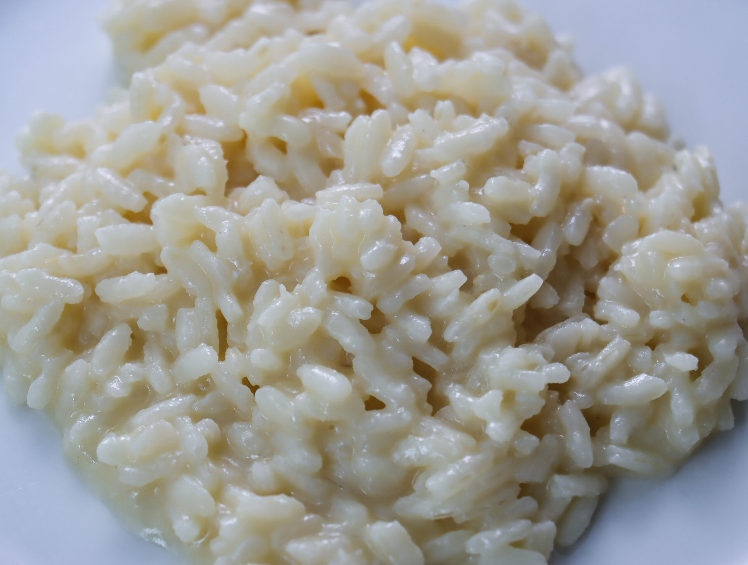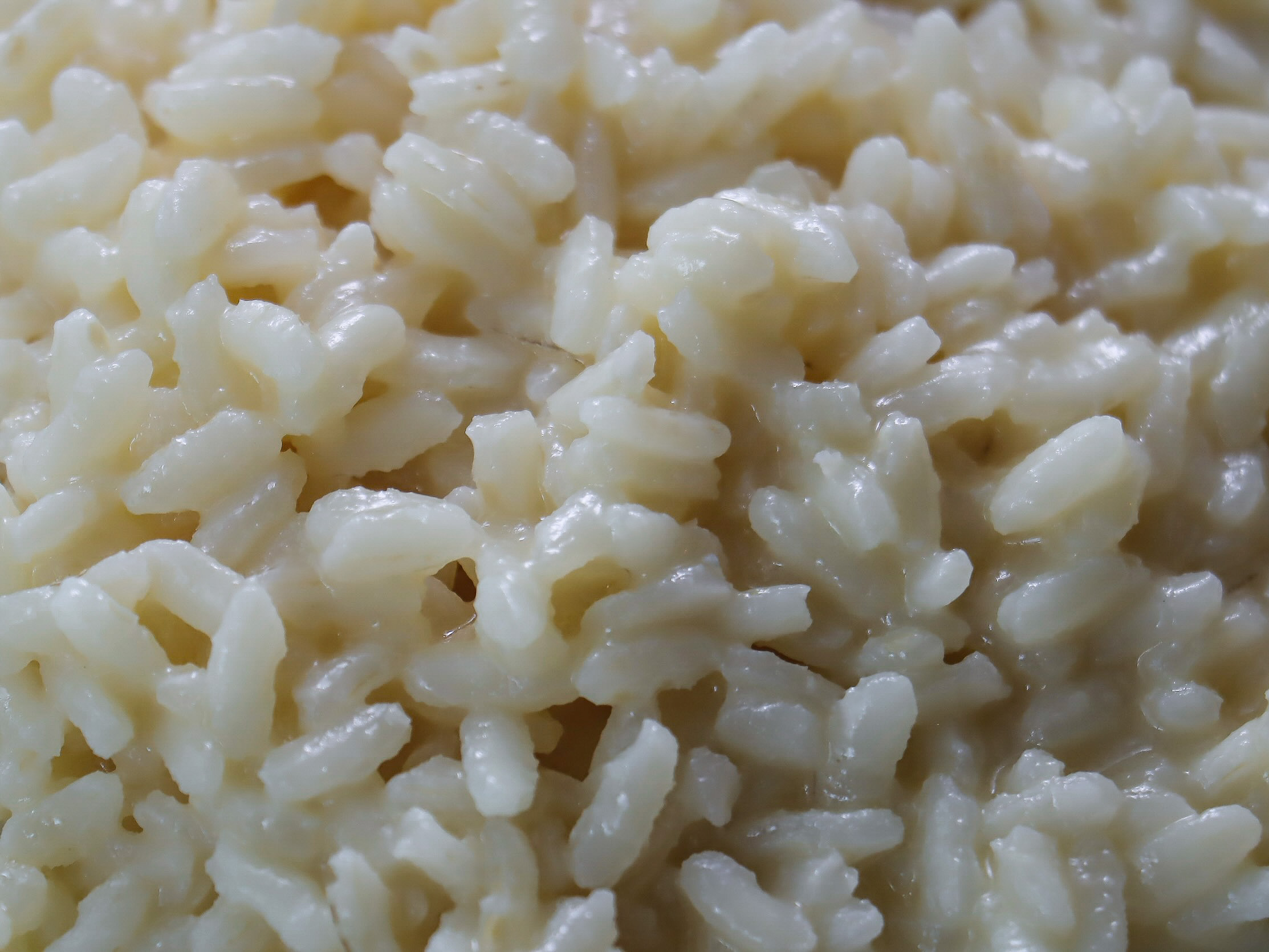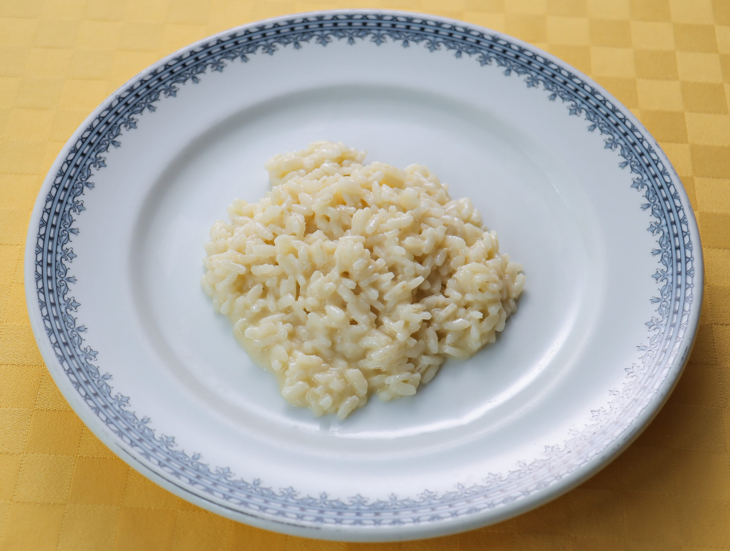 リゾット米は、大粒で煮崩れしにくいイタリア産のリゾット用品種カルナローリを使用。イタリア北部ピエモンテ州の米処ヴェルチェッリ県で1935年からリゾット用の米をつくり続ける「ロンドリーノ」社のブランド米「アクエレッロ」