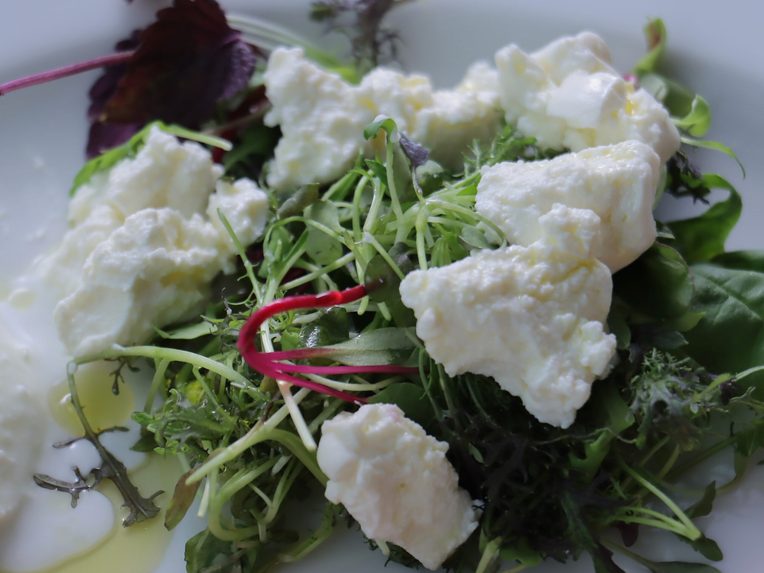 チーズと冷菜の盛り合わせ(リコッタチーズとマイクロハーブ、ルッコラ))