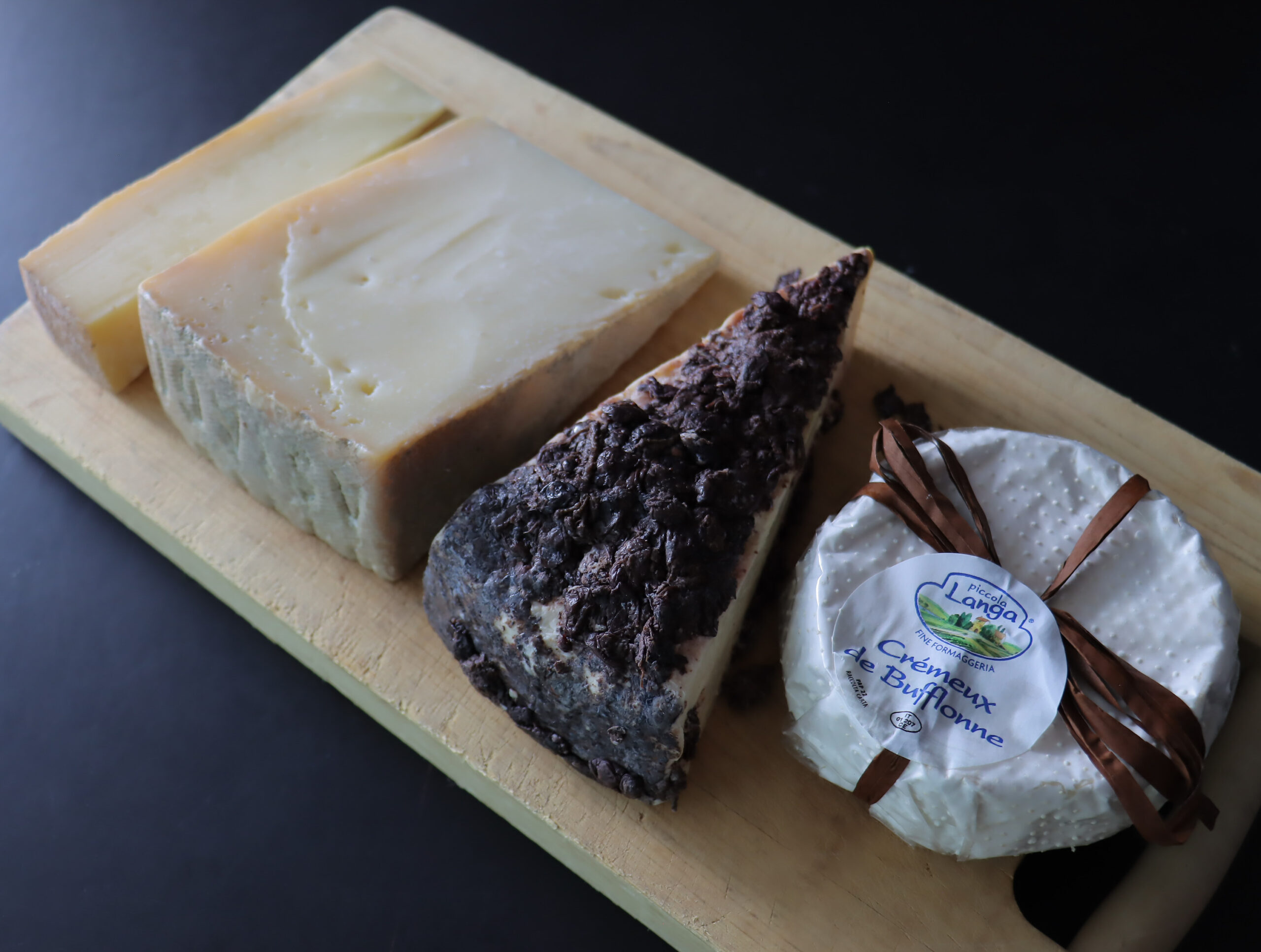 イタリア産チーズ4種(左から①ウブリアアーコ・セッコ②アズイアーゴ・ヴェッキオ③オッチェリ・アル・バローロ④フレーム・ド・ビュフロンヌ)