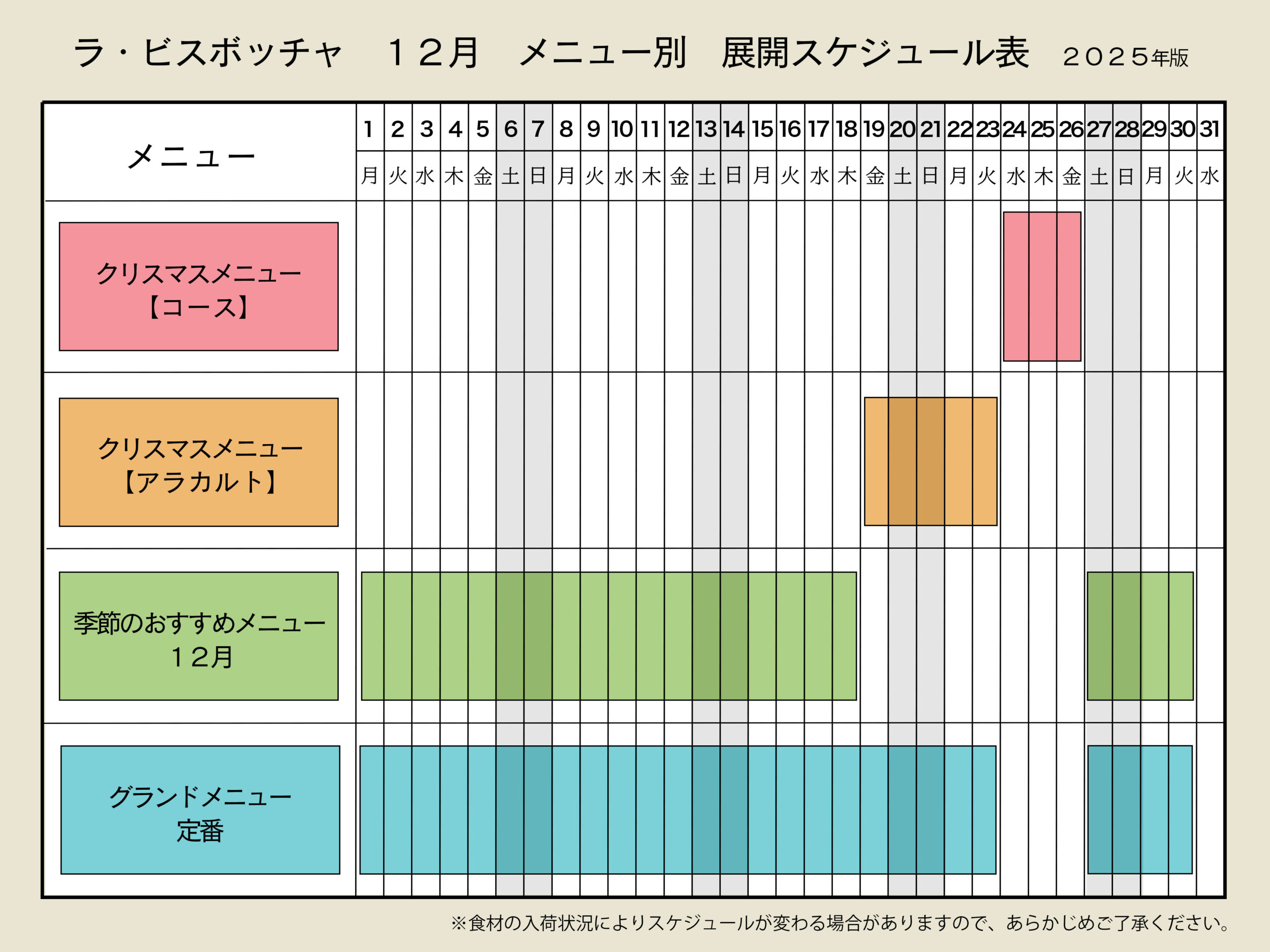 期間中「季節のおすすめメニュー12月」はお休みとさせていただきます。